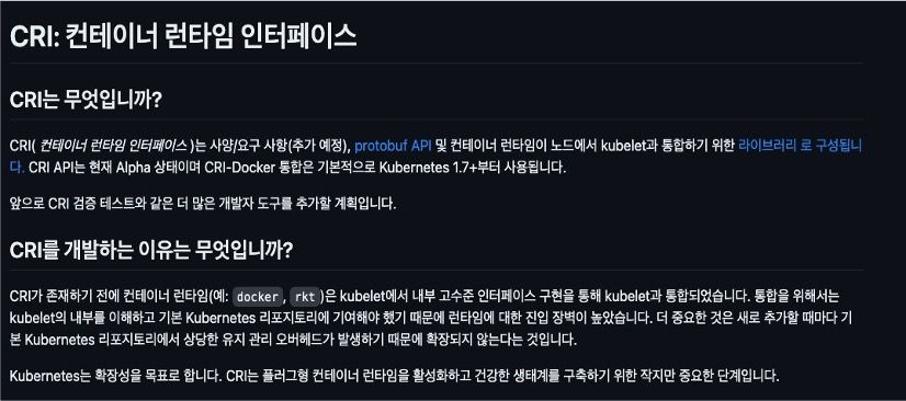 - 쿠버네티스는 containerd, CRI-O와 같은 컨테이너 런타임 및 모든 Kubernetes CRI (컨테이너 런타임 인터페이스) 구현체를 지